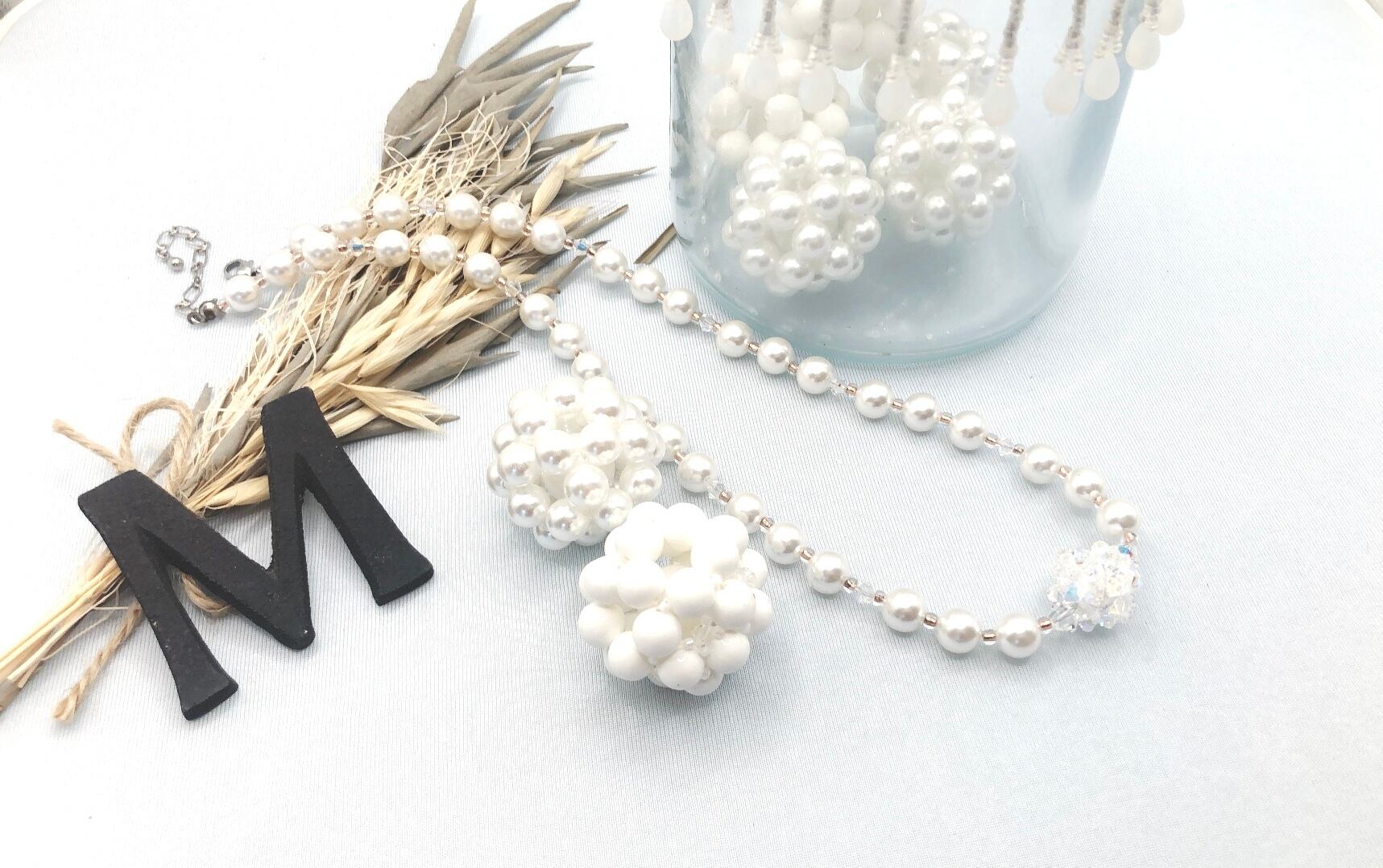 パーティーなどにはもちろん、意外と普段使いもいけちゃう大人可愛いネックレスが出来ました˚✧₊
